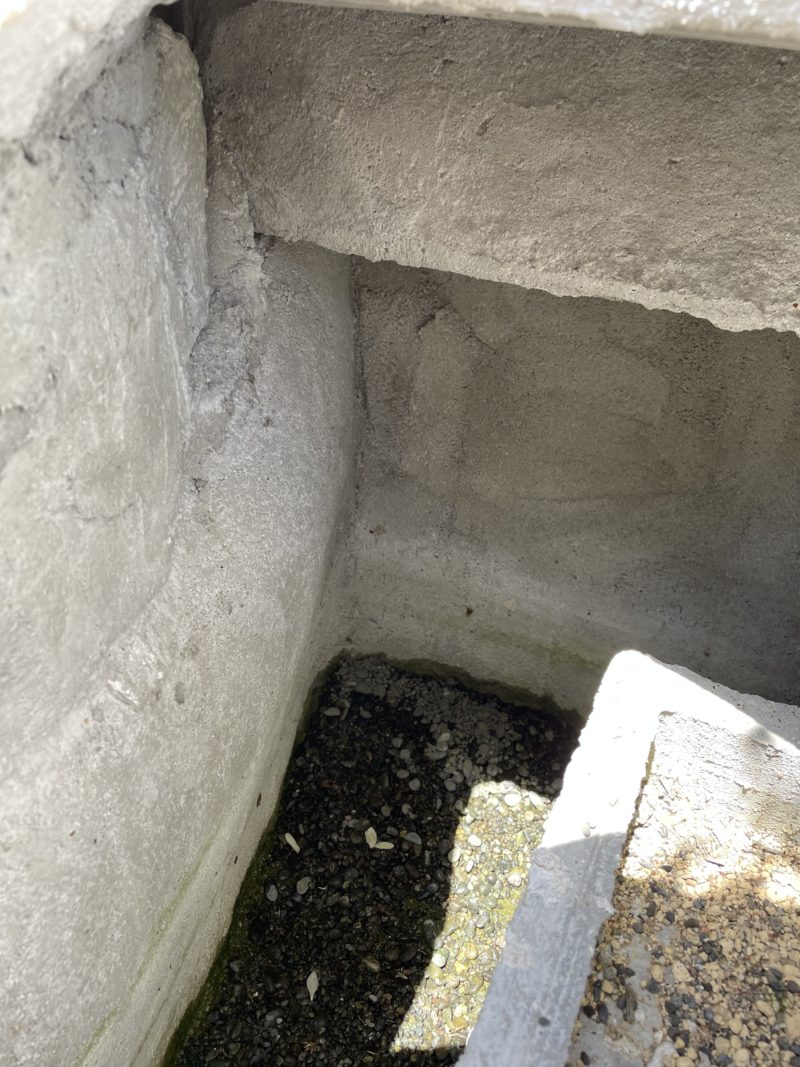 池後部から見ると中央の下部から水漏れが確認出来ました。