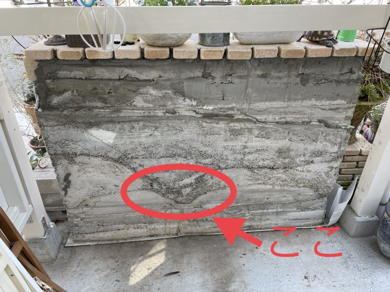 何か上の方に段差がありますが、この段差を後々利用して板のテーブルを付けたいなって思っています。天気が良い日はここでモルタル造形の作業が出来ればいいな~って思ってるんですよ。
