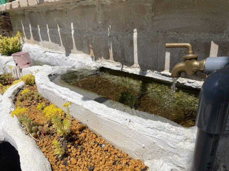 その後、完全に乾かしてから池に水を張って水漏れがないか確認することにしました。