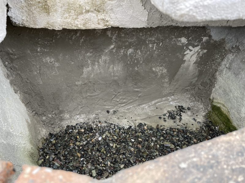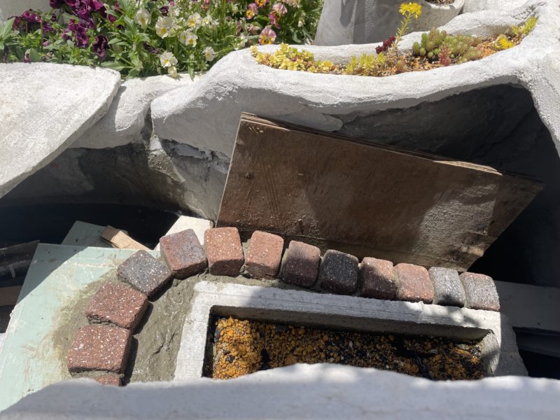 鏝を持った手が奥の方までなかなか届かず、モルタルを塗るのがすごく大変でした。