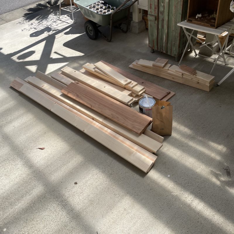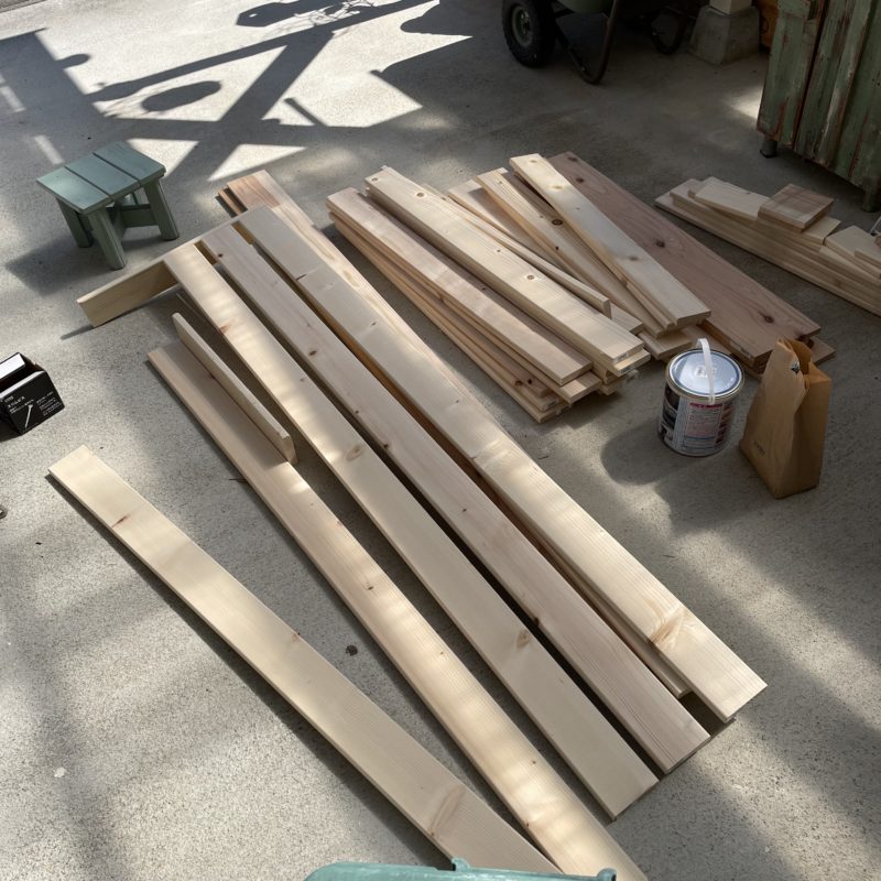 この木材をカットしてもらい(11カットで¥550)家に持って帰り組み立てていきます!