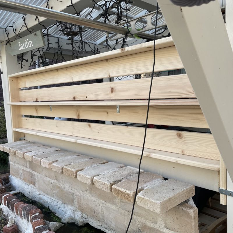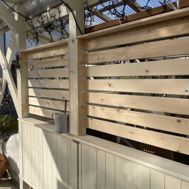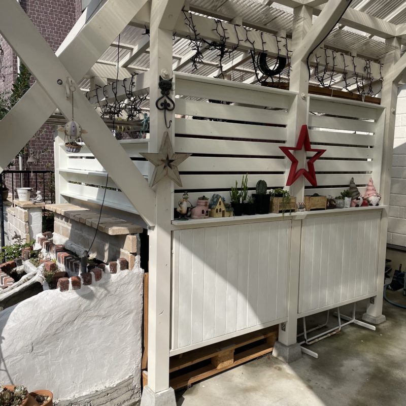 今後この目隠しに棚板を取り付けて植物や自分の商品を並べていこうと思います。